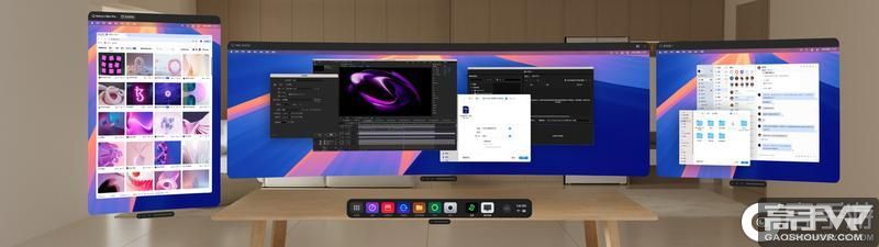 第二,新增全新的PC虚拟显示器驱动,也就是说,假如你在现实世界没有多个电脑或显示器,但又想享受多显示器的便利,可直接在PICO工作台创建虚拟显示器,实现PC桌面的拓展。如果你是一个剪辑师,当你剪辑视频时,可以创建多个虚拟显示器,同时在头显工作台显示多个工具界面,轻松进行多任务处理,在有限的时间内完成更多的工作。